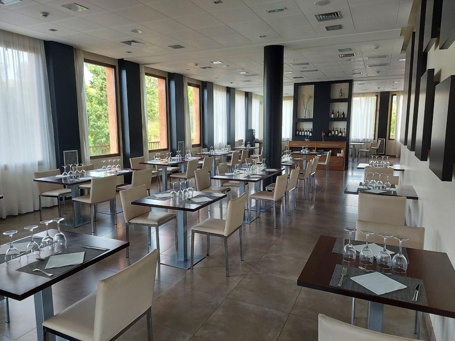 The hotel has a restaurant, a banquet hall, cafeteria and private parking for clients. Traditional Aragonese food is served in the Hotel Fuente del Miro's minimalist restaurant. There is also a bar where drinks and snacks are served. It offers a packed lunch service.